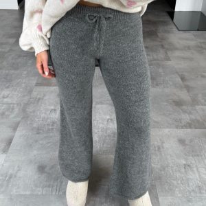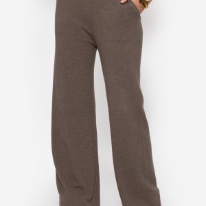 Gerippte Strickhose Für Damen Mit Weitem Bein Lässig Fließende Pulloverhose Elastischem Bund Schwarze Hose Seitentaschen Lang Winter Elegant …